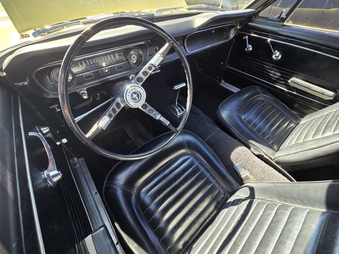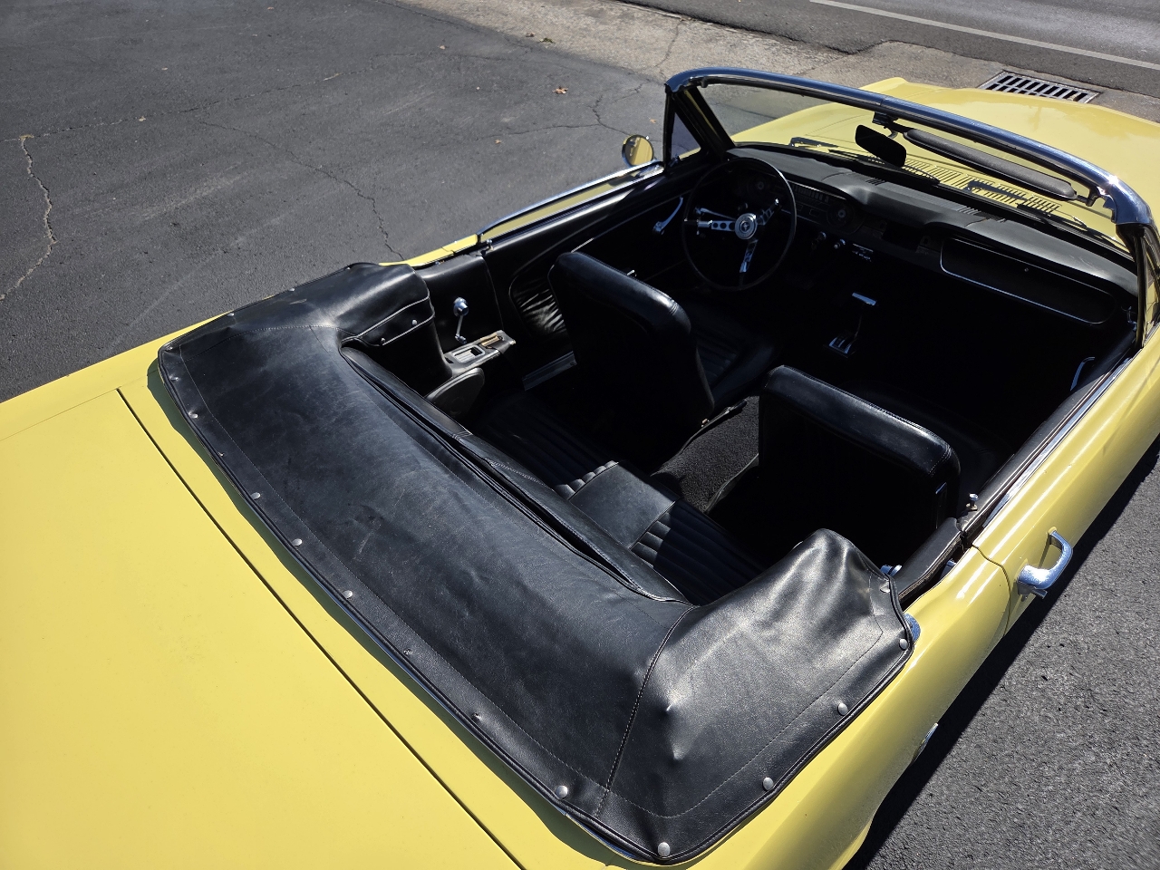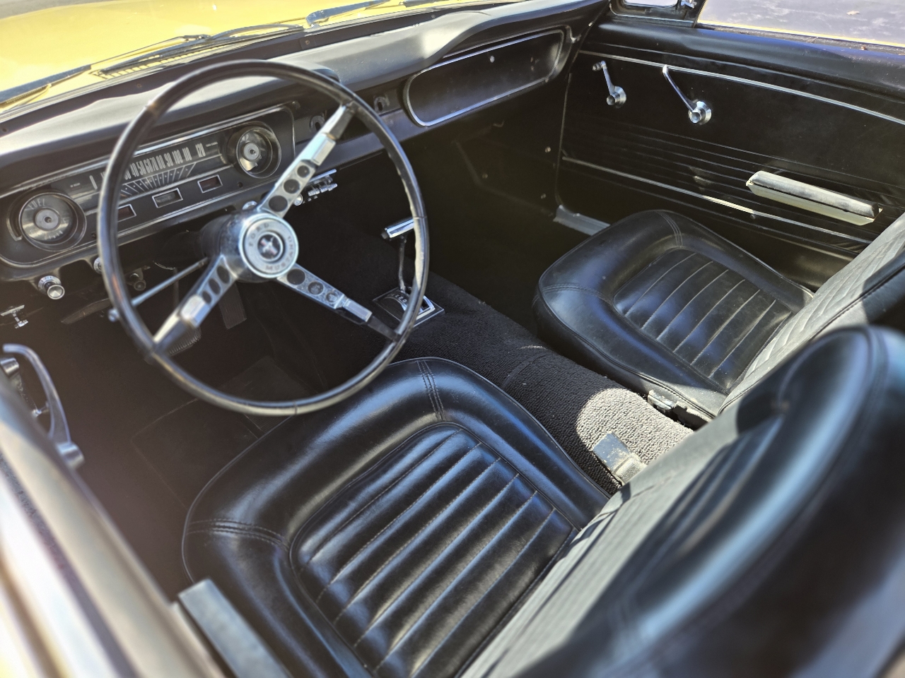 Classic first-generation Mustang convertible with the desirable 289 V8. Runs and drives well, starts easily, and the top works as it should. Original yellow paint with black vinyl interior. Overall a solid driver-quality car that still turns heads, but it does have some minor rust, older repairs, and imperfections as you’d expect for its age.