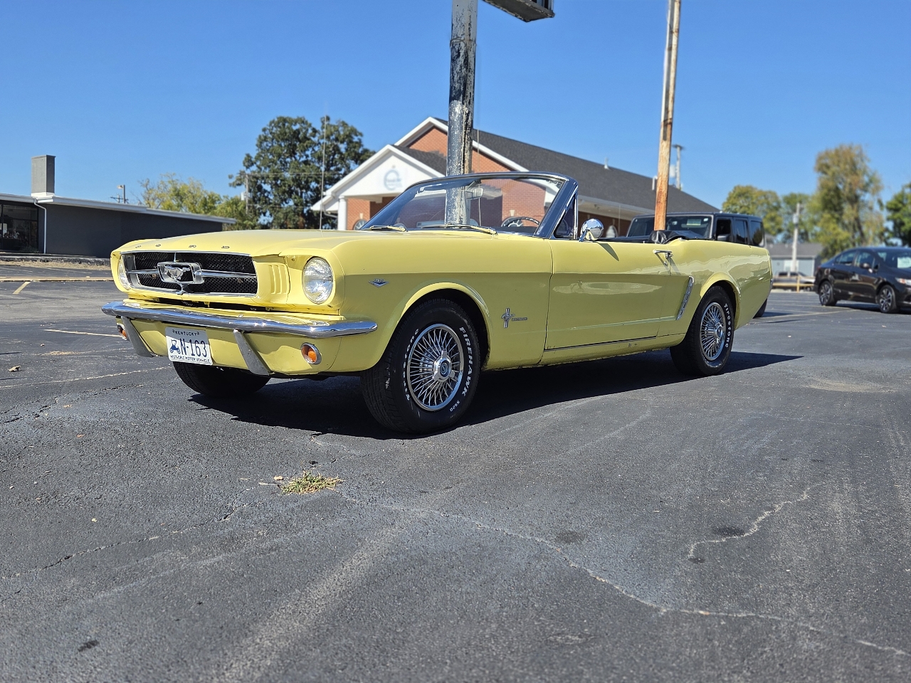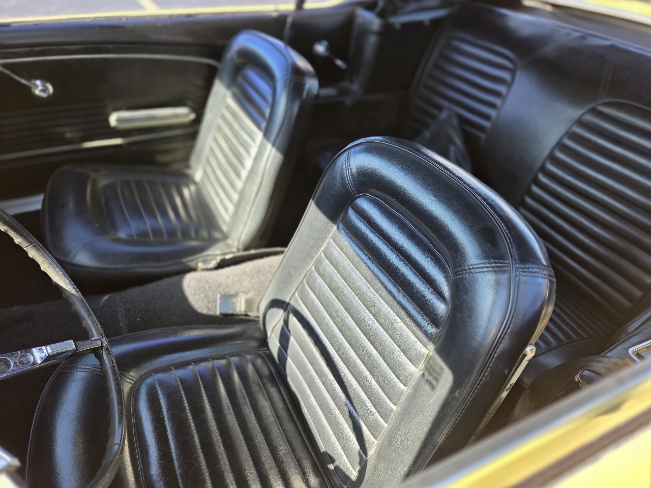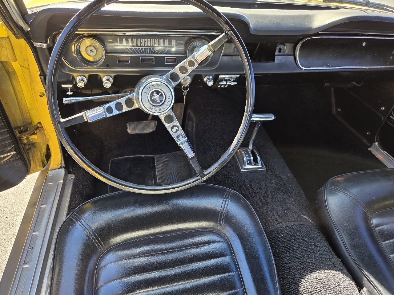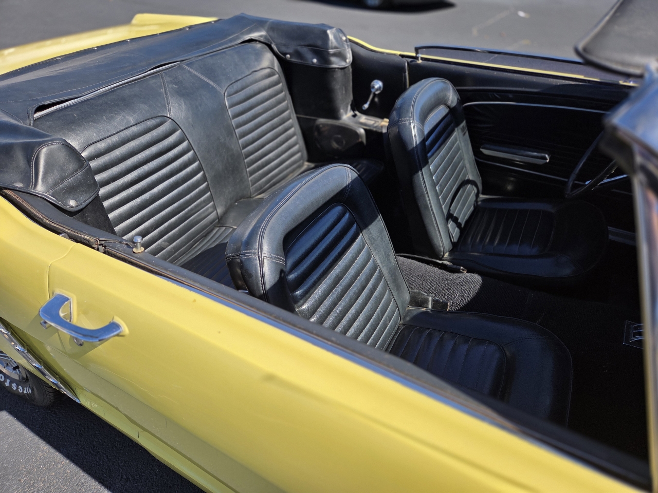 Classic first-generation Mustang convertible with the desirable 289 V8. Runs and drives well, starts easily, and the top works as it should. Original yellow paint with black vinyl interior. Overall a solid driver-quality car that still turns heads, but it does have some minor rust, older repairs, and imperfections as you’d expect for its age.