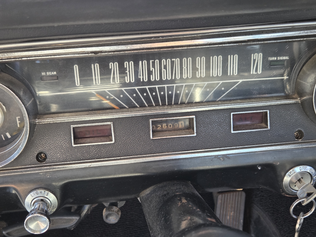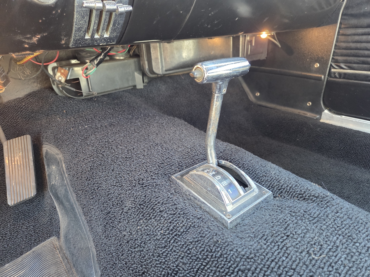 This one has no power steering or power brakes. The factory A/C system has been removed, though several original parts are included (no compressor). Also comes with an uninstalled radio. The convertible top is newer and in good condition.